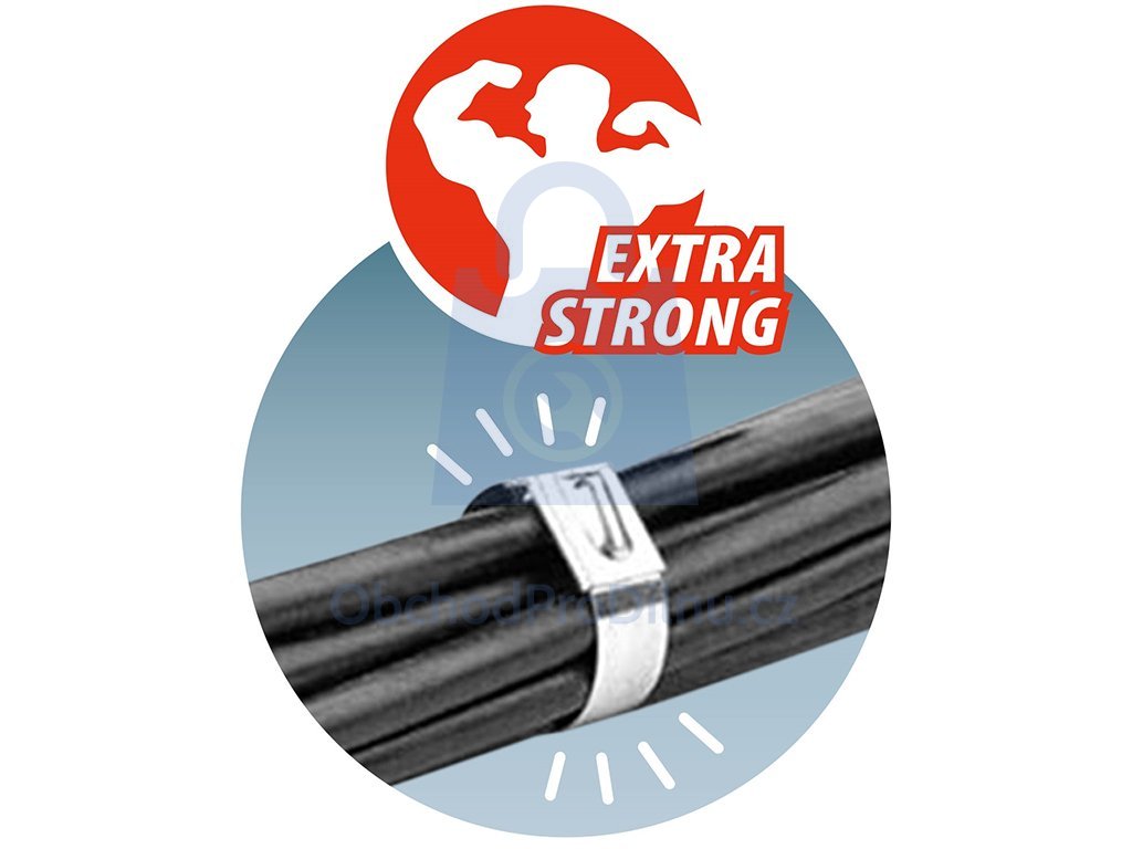 Pomocí manipulačních kleští je možné dosáhnout větší kontroly a vyvinout tak větší sílu a lépe dotáhnout nerezové stahovací pásky. Kleště umožňují nepotřebné konce pásku po dotažení zastřihnout. Kleště jsou vhodné pro dotahování pásku o max. šířce 12 mm.
