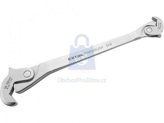 Multifunkční samonastavitelný klíč Extol Premium je vyroben z kvalitní chrom-vanadiové oceli pro dosažení optimální tvrdosti, pevnosti a odolnosti vůči korozivním vlivům. S tímto klíčem lze pracovat obdobně jako s ráčnovým klíčem, jednou stranou se přitahuje a převrácením odtahuje. Není nutné hlavu klíče při práci vytahovat a znovu nasazovat. Klíčem lze v jednom směru otáčet kolem matice (přes její hrany) do potřebné pozice a poté záběrem do opačného směru provedete fixaci matice v hlavě klíče, to umožní provést odtažení/přitažení.