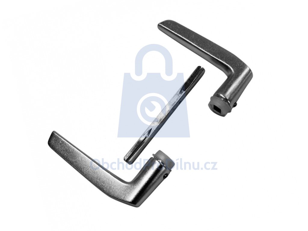Klika hliníková 3006M-H. Klika hliníková je vysoce odolná, univerzální klika stříbrné barvy, která se používá jako příslušenství k plotovým branám, brankám i vratům. Typ stavební a nábytkové kování. Klika je vyrobena z hliníku a je určena pro hranatý profil.