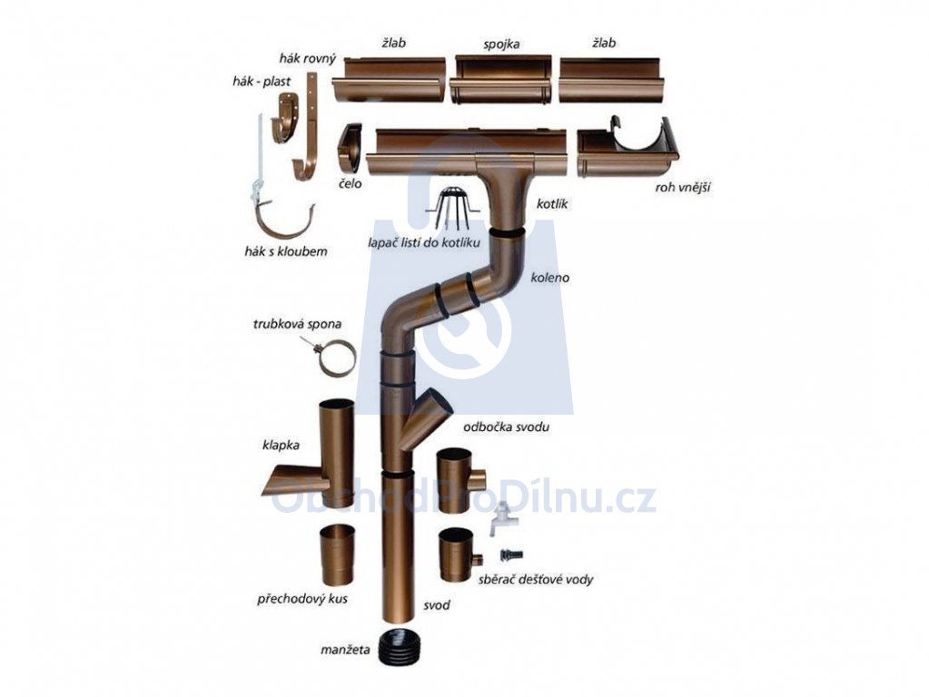| provedení, specifické vlastnosti | plastový okapový systém s množstvím doplňků |