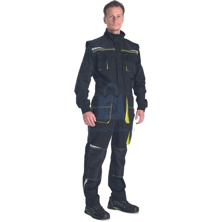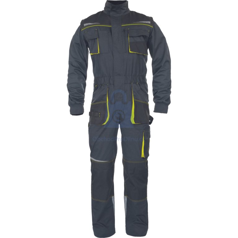 Tento strečový overal má elastický pas a relax střih pro maximální pohodlí. Odepínací rukávy s pletenými manžetami umožňují snadnou přeměnu na overal s krátkým rukávem. Nechybí multifunkční kapsy včetně 2 náprsních, z nichž jedna je určená pro mobilní telefon. Kolenní a loketní části jsou zesíleny odolným materiálem Oxford 600D, přičemž kolenní kapsy umožňují vložení nákoleníků. Reflexní segmentové detaily zvyšují bezpečnost při zhoršené viditelnosti. Díky systému pro prodloužení nohavic o 5 cm si snadno upravíte délku podle potřeby. Vhodná pro práci v stavebnictví, strojírenství i údržbě. Pro firmy nabízíme výhodnější ceny při větších odběrech pracovního oblečení – kontaktujte nás na velkoobchod@obchodprodilnu.cz.