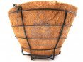 Košík závěsný pro květináč je dekorativní závěs pro květináče. Skládá se z pevného ocelového rámu, do kterého je zasazen koš z kokosové výplně. Dodá květinám zajimavý a netradiční vzhled. Košík je osazen řetízky se závěsným hákem pro montáž na libovolné místo v pergole, na zahradě, v přístřešku apod.