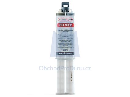 Rychle tuhnoucí tekutý kov CH Met od značky CHEMSTR na bázi epoxidové pryskyřice je určen pro opravu ocelových a litinových dílů, použití je univerzální - zaplňuje praskliny, porozity a netěsnosti na mnoha metalických površích. Tekutý kov neobsahuje rozpouštědla. K ruční pevnosti dochází již po 15 minutách, k finálnímu vytvrzení dochází po 24 hodinách.