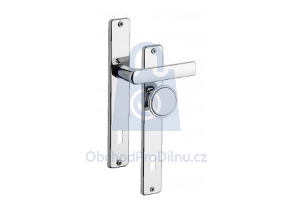 Dveřní kování ROSTEX 804 s povrchovou úpravou chrom-nerez s roztečí 90 mm obsahuje otvor pro cylindrickou vložku, která není součástí dodávky. Kování je určeno zejména pro plotové branky a nabízíme jej ve 3 různých provedení: