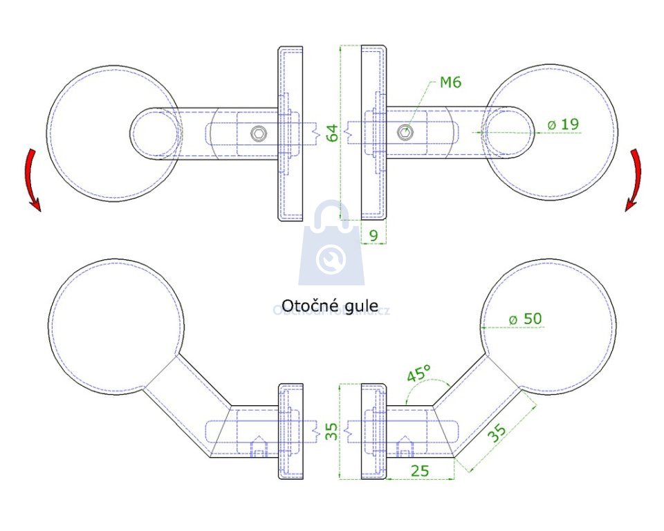 - Provedení koule / koule – oboustranné ovládání.