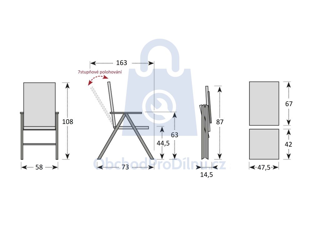 charakteristika produktu hliníkové skládací zahradní křeslo s pevným výpletem