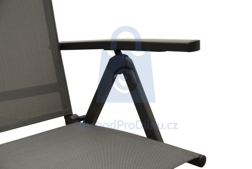 Moderní zahradní křeslo ACTIVE s područkami má pevnou lehkou stabilní hliníkovou konstrukci a výplet z umělé textilie barvy stříbrné káro. Křeslo je díky použitým materiálům bezúdržbové a dobře odolává vlivům počasí. Křeslo je vybaveno 7 stupňovým polohovacím systémem a je skládací, a proto je nenáročné na skladové prostory.