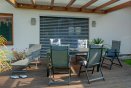 Moderní zahradní křeslo ACTIVE s područkami má pevnou lehkou stabilní hliníkovou konstrukci a výplet z umělé textilie barvy stříbrné káro. Křeslo je díky použitým materiálům bezúdržbové a dobře odolává vlivům počasí. Křeslo je vybaveno 7 stupňovým polohovacím systémem a je skládací, a proto je nenáročné na skladové prostory.
