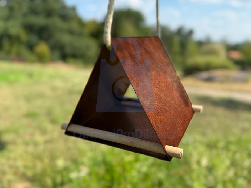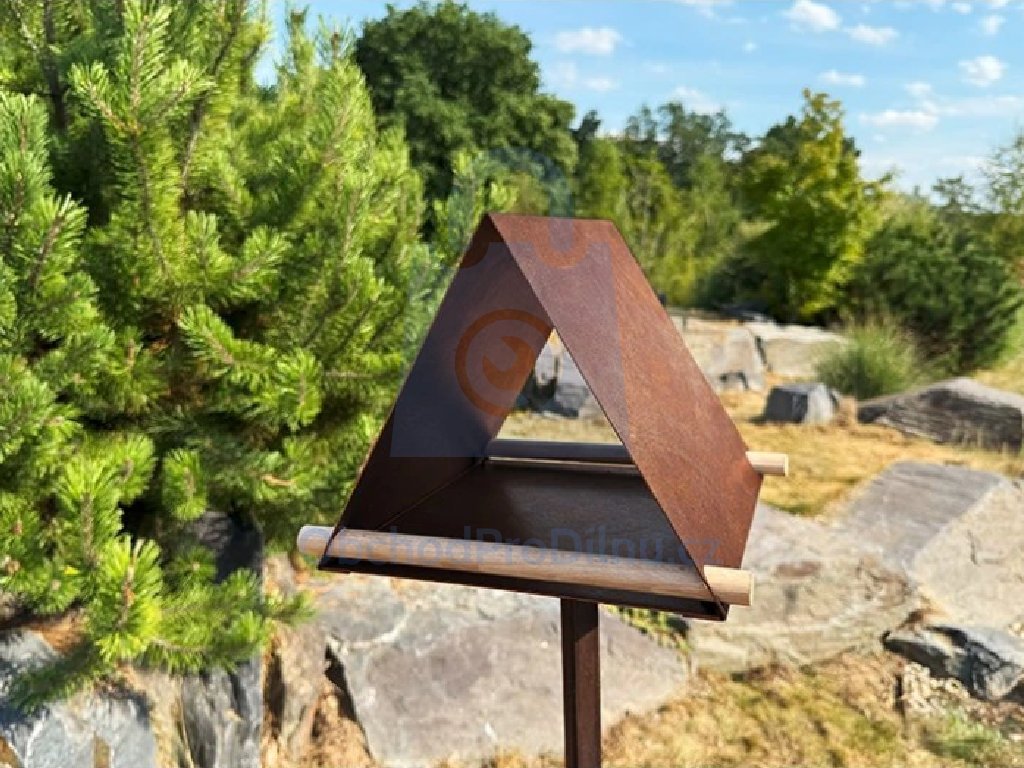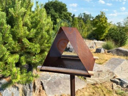 | provedení, specifické vlastnosti | moderní ptačí krmítko ve tvaru trojúhelníku přináší do zahrady rovnováhu mezi estetikou a funkčností |