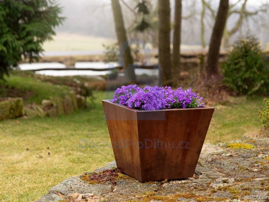 provedení, specifické vlastnosti zahradní květináč s nadčasovým designem ze samopatunující oceli