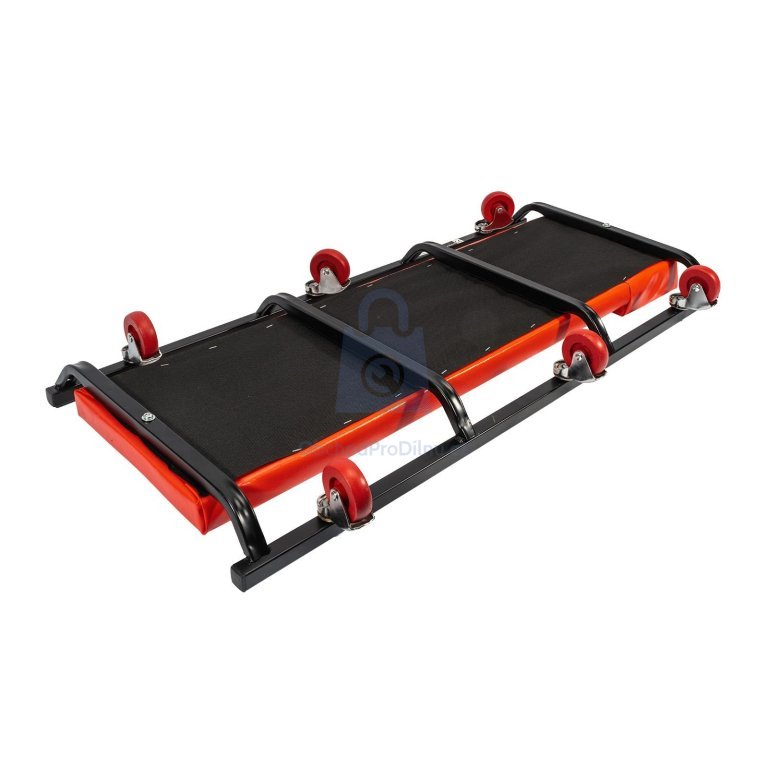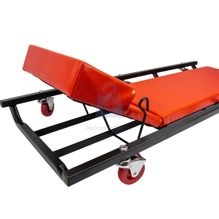 charakteristika produktu polohovací lehátko s polstrováním pro pohodlnou práci pod vozidly, možnost nastavení sklonu zádové části zvyšuje komfort při delším používání