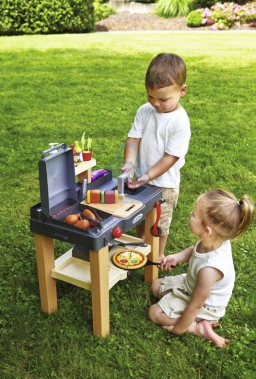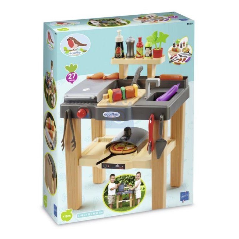 Letní zahradní kuchyňka s pecí na pizzu od Ecoiffier nabízí vše, co potřebují malí kuchaři. Tato kuchyně je vybavená pecí na pizzu, placha grilem, prkénkem a dřezem. Součástí je četné příslušenství a potraviny. Rozměry produktu (DxŠxV): 49 x 32 x 55 cm.