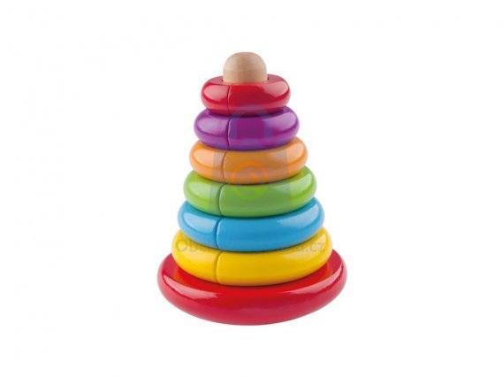 Magnetická skládací pyramida - Káča slouží pro rozvoj dětské motoriky, logiky a soustředění. Každý navlékací kroužek je rozdělen na dva díly, které se spojí magnetem. Kroužky se poté navlékají na tyčku do tvaru pyramidy. Díky pyramidě se děti naučí jemné motorice ale také je s pomocí pyramidy můžete naučit barvy.