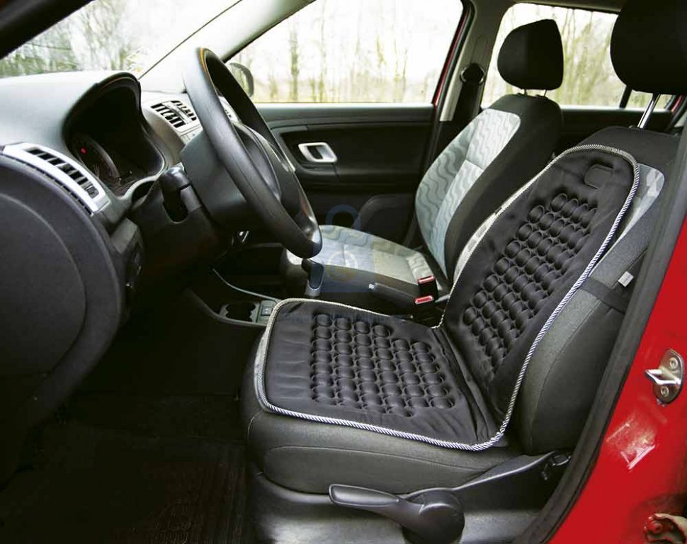 S masážní podložkou do auta už vás nebudou trápit žádné bolesti zad. Univerzální masážní podložka na sedadlo automobilu se zabudovanými magnety má jednoduchý systém upevnění, přizpůsobí se plně v jakékoli pozici sedadla. Působení zabudovaných magnetů pozitivně přispívá ke zmírnění bolestí zad a páteře během dlouhé jízdy. Magnety jsou uloženy v sedadlové i opěradlové části potahu. Pro ještě větší pocit uvolnění a odbourání stresu můžete doma pokračovat s masáží např. ve vířivce. Masážní podložka je vhodným dárkem pro každého řidiče.