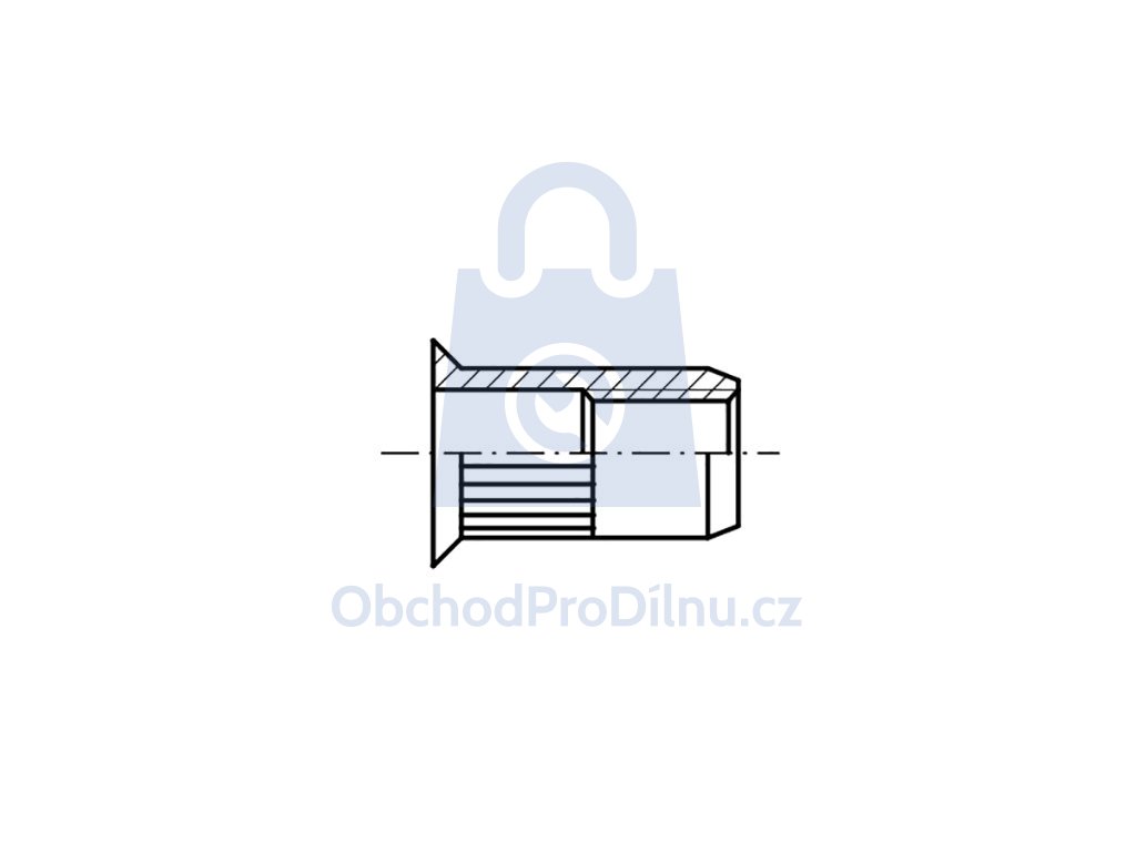 Matice nýtovací se zápustnou hlavou s rýhovaným tělem, uzavřené je vyrobena z pevné a kvalitní oceli a pozinkována. Nýtovací matice s metrickým závitem se využívá zejména ke spojování tenkostěnných dílů z materiálů jako jsou plechy, plasty nebo kompozity. Spoje jsou tak velmi pevné a stabilní.
