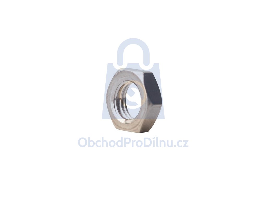Nerezová nízká šestihranná matice s jemným závitem je ocelová normovaná matice podle DIN 439B. Je vyrobena z nerezavějící oceli A4, takže je vhodná pro použití v exteriéru i do prostředí s výskytem chemikálií a slané vody (typicky bazény, laboratoře apod.). Matice má jemný metrický závit a nízkou formu.