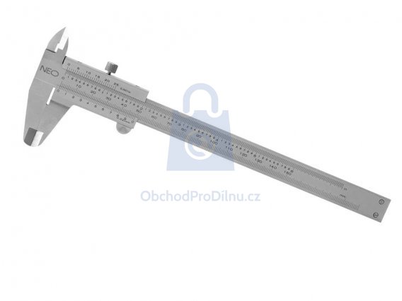 Posuvné měřítko, od firmy NEO Tools. Měření pomocí posuvného měřítka s upínacím šroubem zefektivní i zpřesní vaší práci. Určeno jak pro profesionální tak i hobby použití. Měřítko využijete pro 4 typy měření: vnější, vnitřní, hloubkové a krokové. Posuvné měřítko je vhodné pro přesné kontrolní měření u různých stavebních či u běžných strojírenských projektů, u kterých není vyžadována přesnost vyšší než 0,02 mm.