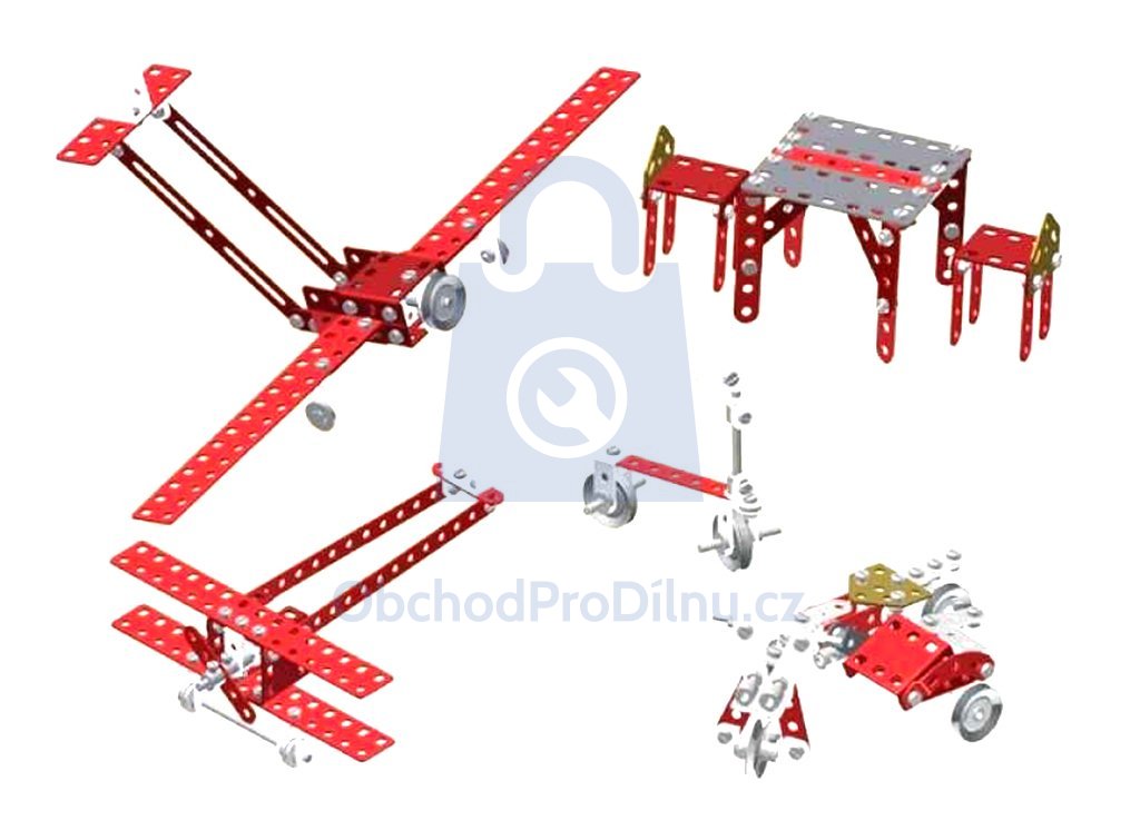 Tradiční stavebnice Merkur se skládá ze 680 dílů vč. šroubováčku a šroubovacích spojů a pomocí jednoduchého návodu z ní můžete postavit až 10 různých modelů. U tohoto produktu tvoříte modely letounů (stíhací, transportní, bitevní,...). Nad rámec mohou malí konstruktéři využít svou kreativitu a zapojit vlastní fantazii pro stavbu vlastního modelu. Se stavebnicí Merkur se mmeze nekladou. Některé modely stavebnice Merkur patří k náročnějším kouskům, ale tato je vhodná i pro děti, které s Merkurem začínají nebo dostanou stavebnici úplně poprvé.