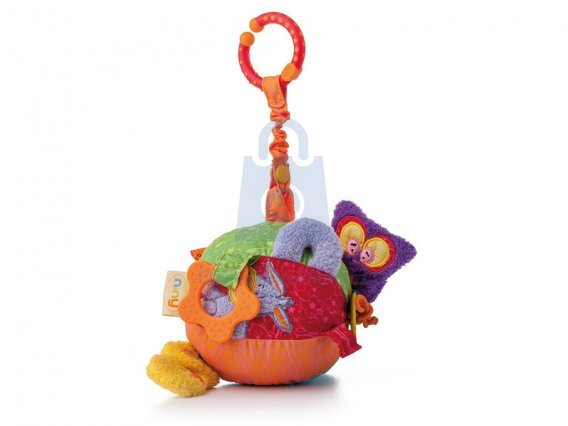 Plyšový Míček "Niny" s aktivitami nabízí dětem nespočet herních variant. Je měkkoučký s pestrobarevnou kombinací látek a výšivkou zvířátek. Jednotlivé doplňky, které jsou našité na míčku buď šustí, chrastí. Míček obsahuje plastové kousátko. Pro trénink jemné motoriky také slouží knoflík ze dřeva s tkaničkami. Lze zavěsit na kočárek. Všechny použité materiály jsou příjemné na dotek a nabízí dětem ničím nerušený čas relaxace.