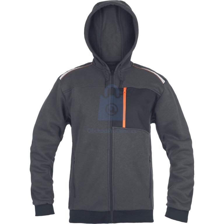Pánská pracovní mikina EMERTON STR s kapucí je vyrobena z odolné směsi bavlny a polyesteru o gramáži 300 g/m². Díky zesíleným ramenům s reflexními pruhy poskytuje vyšší odolnost i viditelnost při práci. Praktické kapsy na zip umožňují bezpečné uložení drobných předmětů, elastický spodní lem a manžety rukávů zajišťují pohodlné nošení.