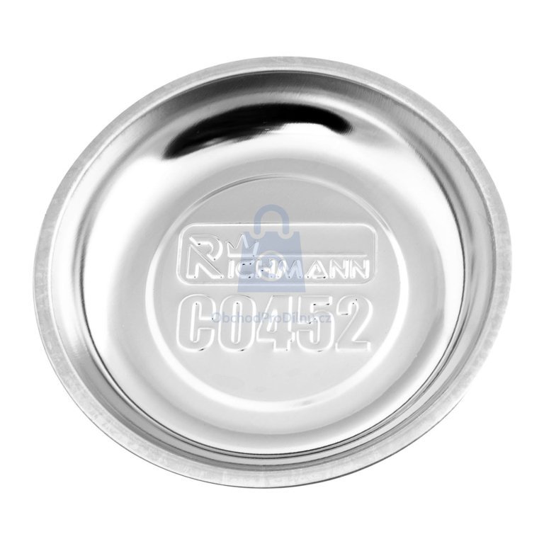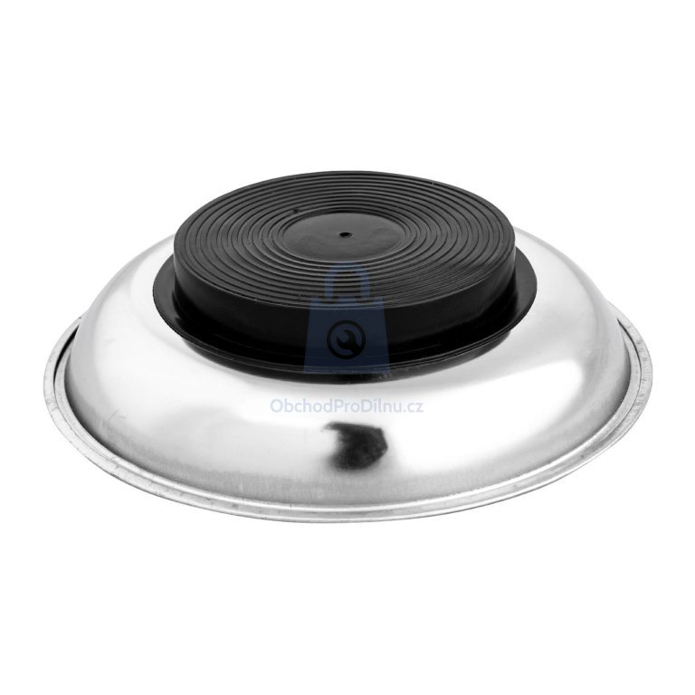 Miska s magnetem kruhová 150 mm – RICHMANN – praktická magnetická miska pro uchycení drobných kovových částí, jako jsou šrouby, matice či podložky. Silný magnet je potažen gumou, která chrání povrch před poškrábáním. Díky magnetu v základně lze misku bezpečně přichytit například na karoserii auta při opravách. Vyrobena z odolného dvojitě pozinkovaného plechu s pochromováním a dodatečným vyleštěním.