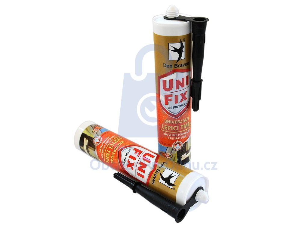 MS Unifix na lepení a tmelení Den Braven je univerzální All-in-One lepící a těsnící tmel na bázi MS polymerů. Tmel je vodotěsným mrazuvzdorný, odolává povětrnostním vlivům a UV záření. Po vytvrzení zanechává pevný a trvale pružný přetíratelný spoj. Použít jej lze na lepení vodotěsných spojů, na lepení a tmelení nerezové oceli, hliníku, mědí, olova, skla, obkladů, keramických dlaždic, smaltu, zrcadel, dřeva, zdiva, sádrokartonu apod. Tmel MS Unifix má vysokou přilnavost k podkladu bez použití příměru, lze ho použít i na vlhké povrchy. Může být aplikován i na kovy, nepůsobí na ně korozivně. Tento tmel je dodáván v kartuši o objemu 290 ml v bílé, černé nebo šedé barvě.