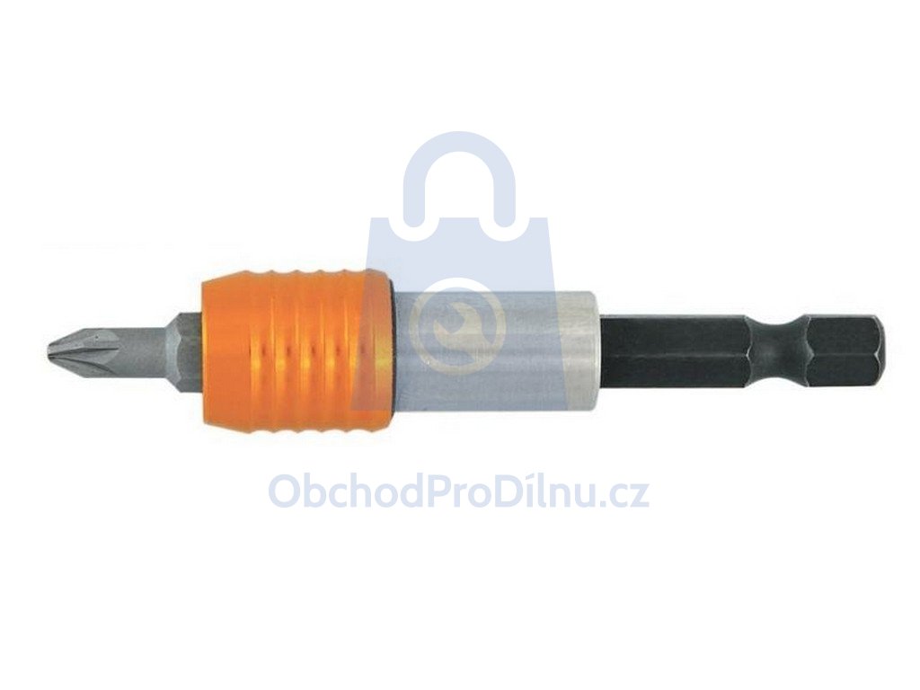 Rychloupínací nástavec pro bity je vhodný zejména pro využití k elektrickým a aku vrtačkám apod. Držák na hroty je opatřen silným magnetem a díky rychloupínacímu systému zabraňuje vypadnutí bitu. Zároveň je velmi pohodlná jeho aretace.