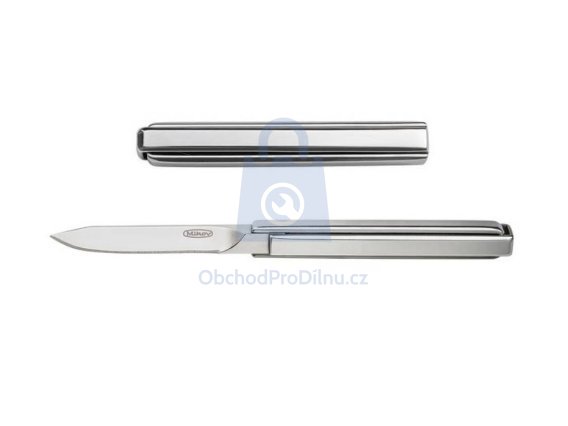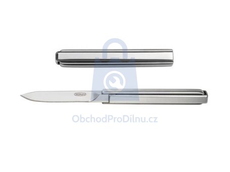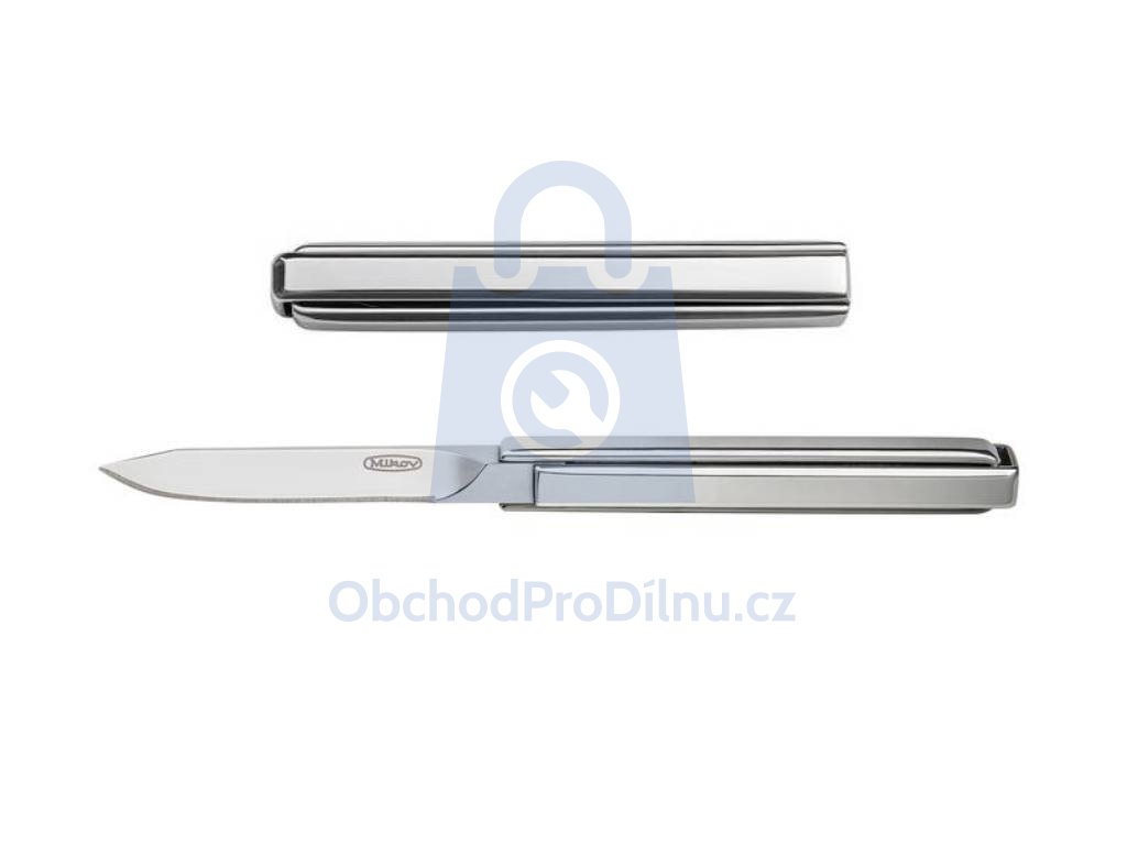 Nůž KOSTKA od české nožířské firmy Mikov Mikulášovice je elegantní a originální kapesní nůž, který vyniká svým jedinečným hranatým designem a netradičním způsobem otevírání. Jeho název „Kostka“ odkazuje na tvar v zavřeném stavu, kdy působí jako stylový doplněk. Otevírání probíhá dvojitým překlopením nerezových střenek o 180°, čímž se čepel bezpečně vysune do pracovní polohy. Tento mechanismus je mimořádně praktický — při otevírání nedochází k namáhání ani poškození nehtů, což ocení zejména ženy. Kompaktní rozměry umožňují snadné přenášení v kapse nebo kabelce a činí z nože KOSTKA praktického společníka do společnosti i na cesty.