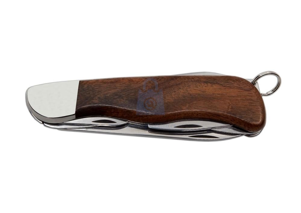 Výrobce: Mikov Mikulášovice. Multifunkční kapesní nůž s vývrtkou, otvíráky a dřevěnou střenkou Palisandr, vhodný pro turistiku a outdoorové použití.