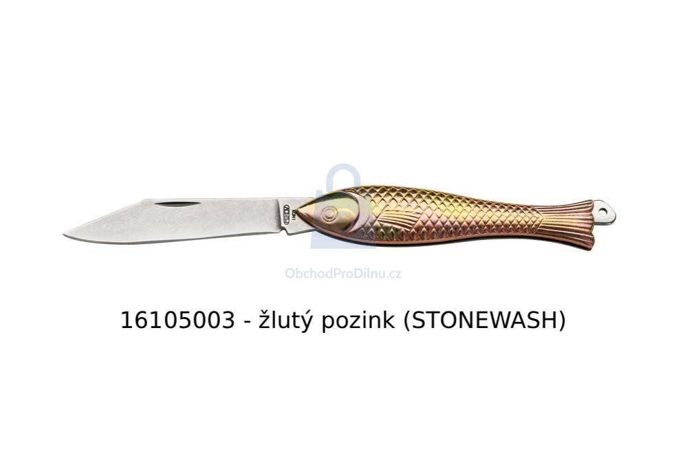 Rybička 130-NZn-1/ZL STONEWASH – čepel s povrchovou úpravou Stonewash pro odolnější vzhled a menší náchylnost k poškrábání.