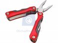 Multifunkční nůž/kleště s 9 díly: kleště, 2x pilník, pilka, střenka nože, šroubováky plochý + PH, 2x otvírák (konzervy, nápoje). Vyrobeno z nerezové oceli.