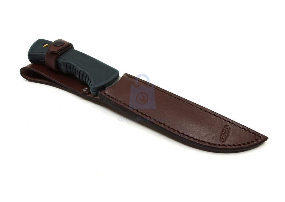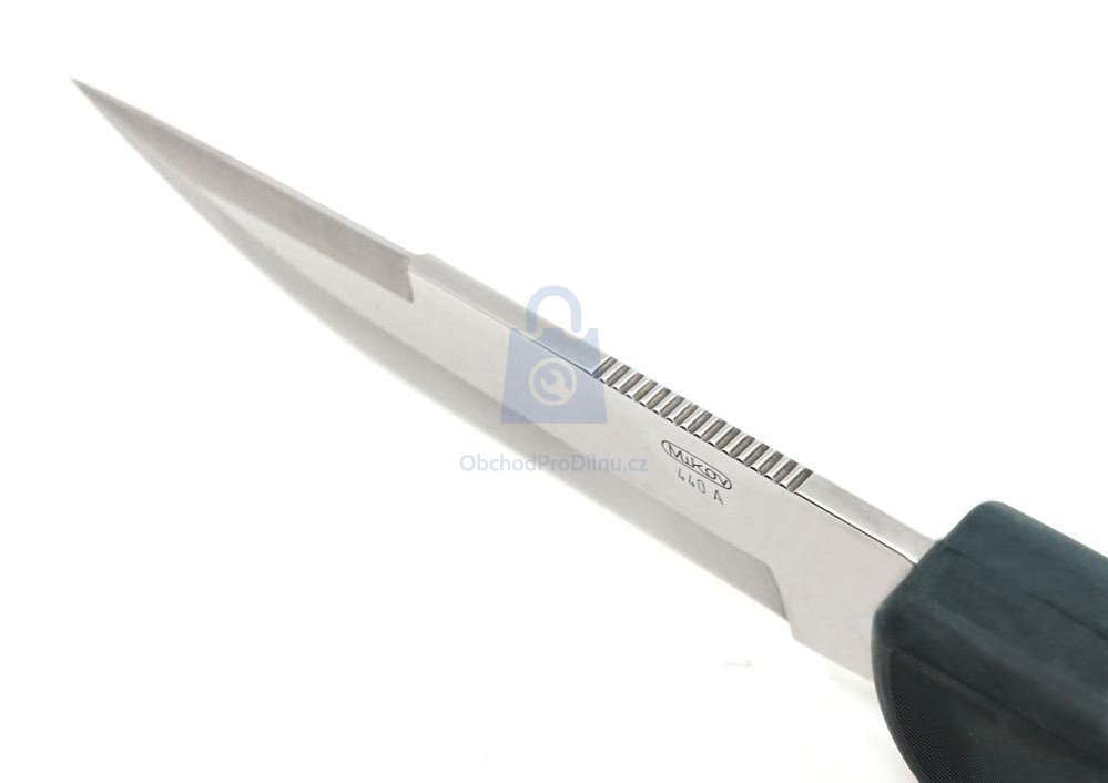 Výrobce: Mikov Mikulášovice. Kvalitní lovecký nůž s pevnou čepelí a pryžovou rukojetí, vhodný pro profesionální i rekreační použití v přírodě.