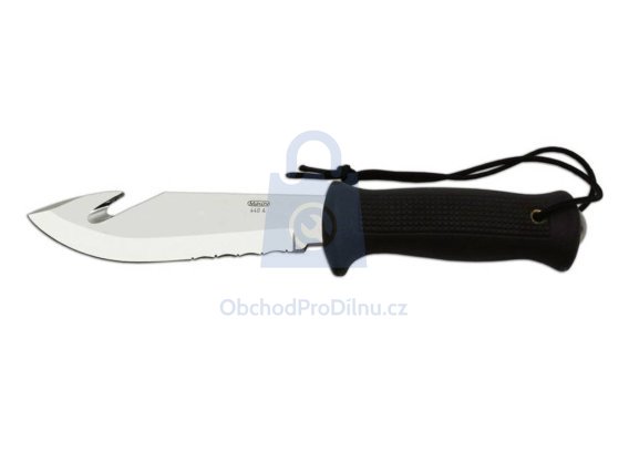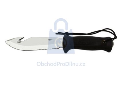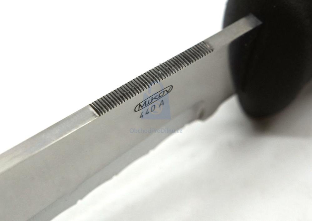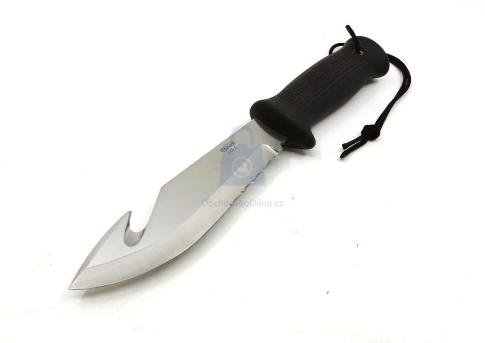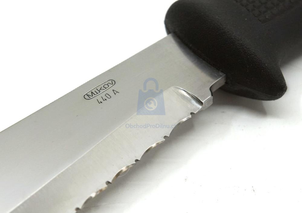 Výrobce: Mikov Mikulášovice. Profesionální potápěčský nůž s trhacím háčkem, zubatým ostřím a rozbíječem, navržený pro bezpečné použití pod vodou.