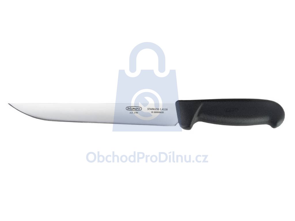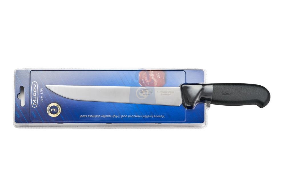 Výrobce: Mikov Mikulášovice. Precizní český porcovací nůž z nerezové oceli 1.4116 s ergonomickou plastovou rukojetí, určený pro profesionální i domácí zpracování masa.