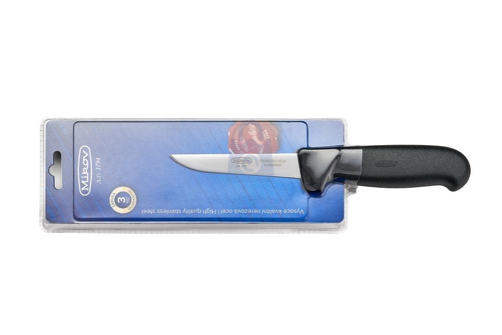 Výrobce: Mikov Mikulášovice. Kvalitní vykosťovací nůž s krátkou rovnou čepelí z nerezové oceli 1.4116 a ergonomickou plastovou rukojetí pro přesnou práci při zpracování masa.