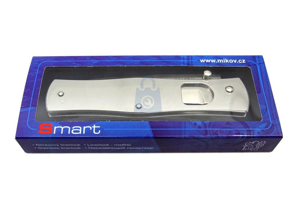 Nůž SMART 240-NN-1 od tradiční české firmy Mikov Mikulášovice je elegantní a robustní kapesní nůž vyrobený z kvalitní nerezové oceli 420 v úpravě vysoký lesk. Díky preciznímu zpracování a praktickému vybavení je určen pro každodenní nošení i náročné uživatele. Nůž je vybaven pojistkou linerlock pro bezpečné používání, kolíčkem pro snadné otevírání jednou rukou a klipem pro uchycení za opasek. Univerzální bajonetový výbrus čepele zaručuje vysokou řezivost a všestranné využití. Na přání lze nůž gravírovat laserem na čepel nebo tělo.