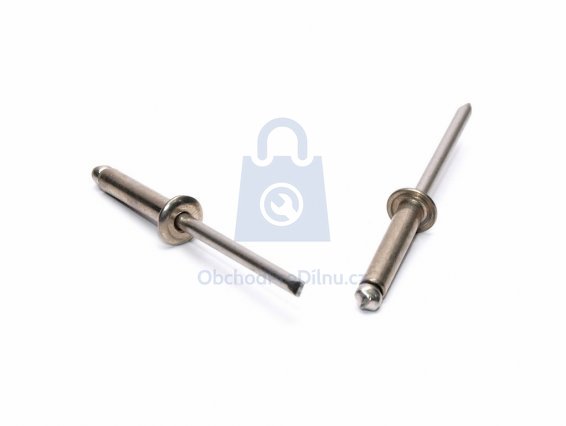 Nýty trhací, plochá hlava, DIN 7337, A2/A2, nýt s nerezovým trnem.