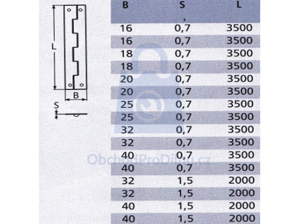 Pant dodáváme v násobcích 0,5 metru. Do poznámky v objednávce nám prosím specifikujte, zda ho chcete dodat v celku nebo po 0,5 metrových částech. Maximální délku pantu dodaného v celku Vám rádi sdělíme na dotaz.