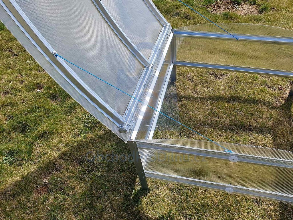 Výplně z 4mm komůrkového polykarbonátu s kvalitním UV filtrem zajišťují rostlinám výbornou tepelnou izolaci a optimální světelné podmínky. Vaše sadba tak získá bezpečný azyl před jarními mrazíky, krupobitím i prudkými letními dešti. Pro maximální stabilitu je konstrukce vybavena 16cm prodloužením profilů, které slouží k pevnému ukotvení přímo do země.
