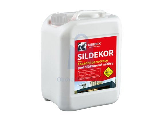 Fasádní penetrace SILDEKOR je určená jako jako univerzální podkladový nátěr pod akrylové, silikonové a silikonově-silikátové fasádní barvy. Penetrační nátěr je vhodný pro běžné a vysoce nasákavé minerální podklady, jako jsou např. vláknocementové desky. Použití penetrace zesiluje křídové podklady, vyrovnává jejich nasákavost., zlepšuje odolnost vůči výkvětům a také zvyšuje přilnavost nátěru, ale nesnižuje propustnost vodních par. Penetraci je možné použít také samostatně za účelem zpěvnění podkladu a snížení savosti následných fasádních barev.