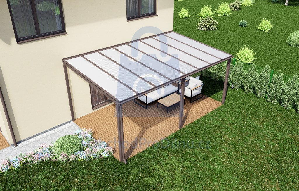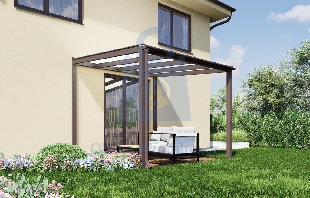 V rámci exkluzivní spolupráce Vám nabízíme jedinečnou hliníkovou pergolu od českého výrobce CRSKLO. Tato pergola je vyrobena z masivních hliníkových profilů o rozměrech 100 x 100 x 2 mm a osazena mléčným bezpečnostním sklem o tloušťce 8 mm. Díky hliníkové konstrukci se nemusíte ani po delším čase bát koroze. Bezpečnostní sklo zaručuje nosnost od 250 kg/m2, odolává váze sněhu i krupobití. Odtok vody je řešen plastovým okapem v barvě konstrukce.