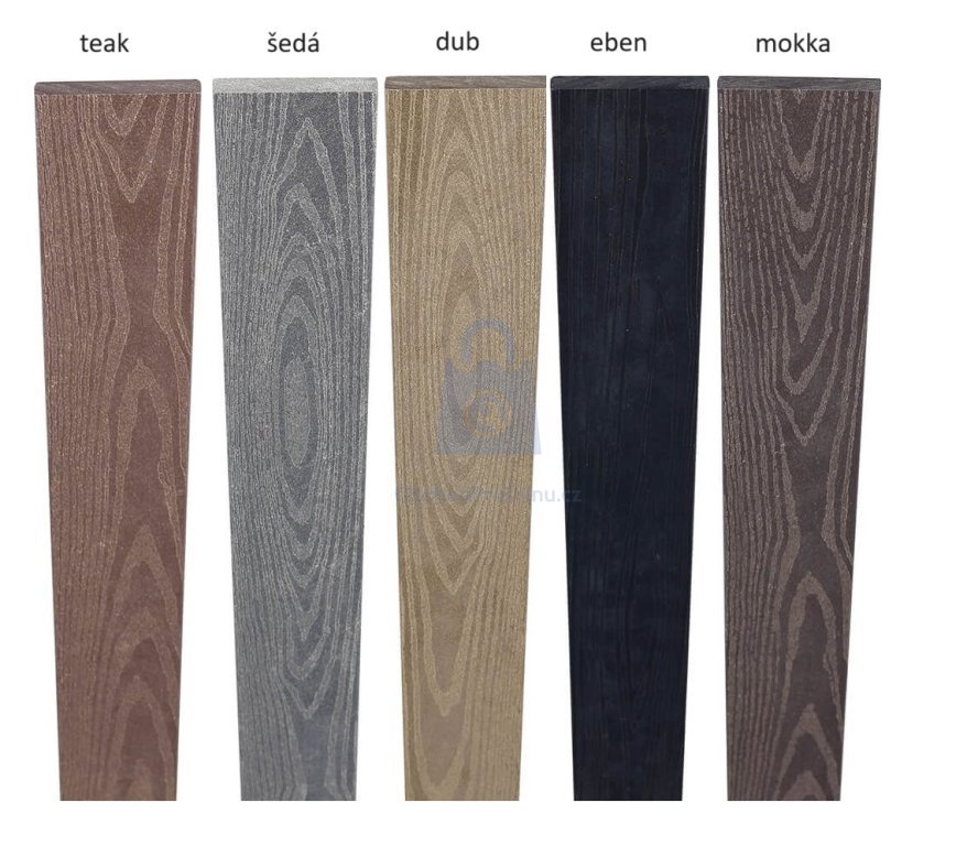 - materiál: dřevoplast (52% dřevěných vláken, 28% polyethylen (HDPE), 20% aditiv)