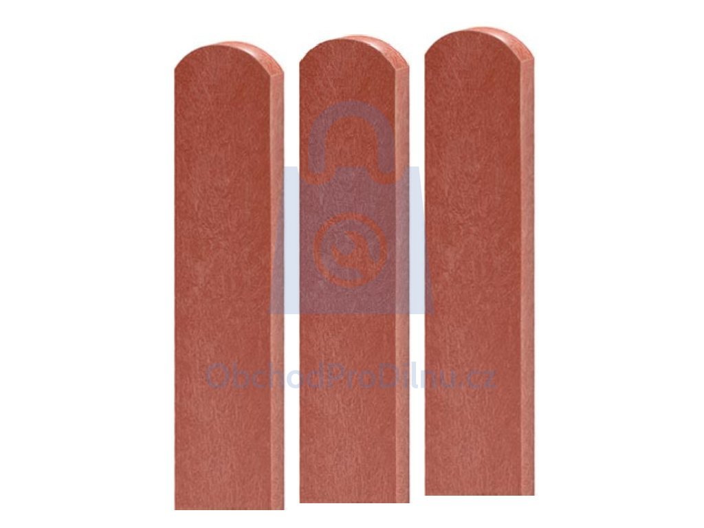 Plastové plotovky s půlkulatou okrasnou hlavou od českého výrobce TRANSFORM jsou vyráběny jako masivní profily s přitažlivým vzhledem a patří k nejprodávanějším produktům při stavbě plotu. Tyto plotovky cihlové barvy jsou vyráběny z materiálu Traplast, který vzniká z recyklovaných plastů. Traplast je moderní materiál s řadou praktických vlastností pro použití v náročných podmínkách. Nároky na údržbu jsou minimální a životnost téměř neomezená.