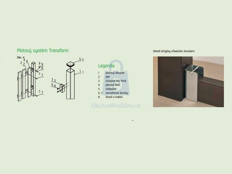 Montáž plotovek pomocí vratového šroubu s podložkou a maticí Tato varianta nabízí nejpevnější spoj díky robustnosti a vlastnostem šroubu. Průměr doporučujeme M6 a délku volte dle síly plotovky, šířky jeklu, podložky a matice. Plastové plotovky mají velkou tepelnou roztažnost, takže i v případě použití šroubů je nutné plotovku předvrtat o cca 2 mm větším vrtákem, než je průměr šroubu. Následně provrtejte obě stěny jeklu vrtákem do kovu. Nezapomeňte pod matici použít podložku a po instalaci plotovky matici nedotahujte "úplně na sílu".