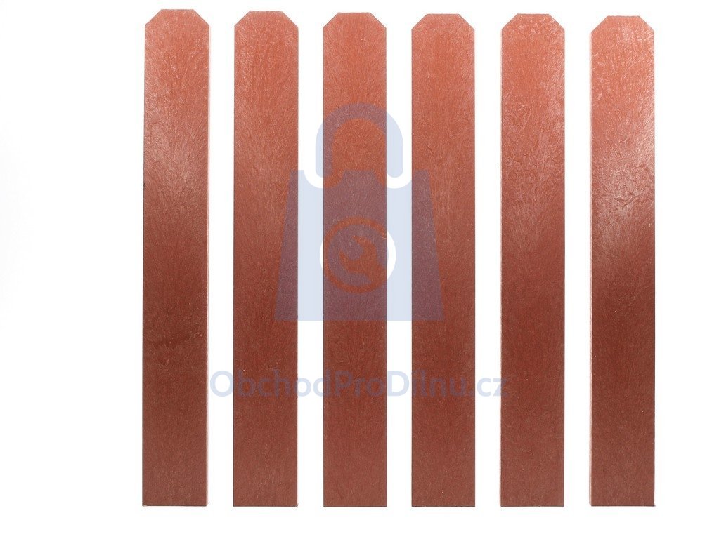Plastové plotovky Transform v cihlové barvě není nutné natírat a jejich značnou výhodou je odolnost vůči hnití, korozi, mrazu a povětrnostním vlivům. Klíčovými vlastnostmi plastových plotovek jsou nenasákavost, barevná stálost a odolnost k běžným chemikáliím. Vzhled profilů se tak i po letech zásadně nemění. Plastové plotovky se snadno čistí a opracovávají dle potřeby (řezání, vrtání), nepopraskají a nevyžadují v podstatě žádnou údržbu. Nízká hmotnost plotovky Vám umožní snadnou manipulaci s výrobkem. S ohledem na šířku latě a doporučený rozestup potřebujete do jednoho běžného metru cca 10 ks plotovek. Mezeru mezi plotovkami doporučujeme v rozmězí 10 až 20 mm.