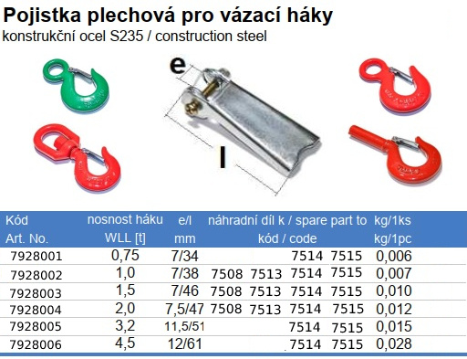 | typ / druh zboží | háky, oka vázací (manipulační technika) |