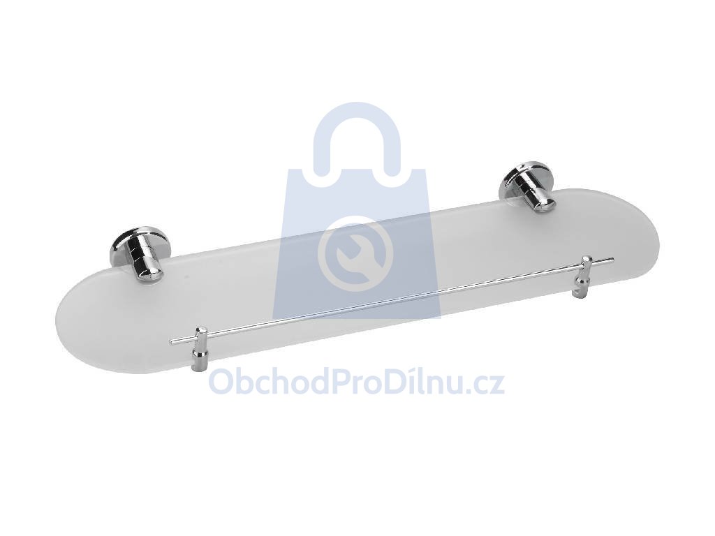 Nástěnná skleněná polička určená pro odkládání koupelnových doplňků. Vhodná pro použití v koupelnách a sprchových koutech. Polička je doplněna chromovanými montážními prvky. Konstrukce je určena pro pevnou montáž na stěnu.