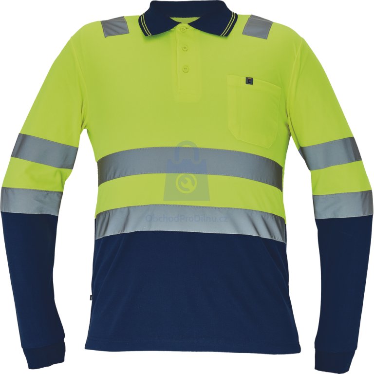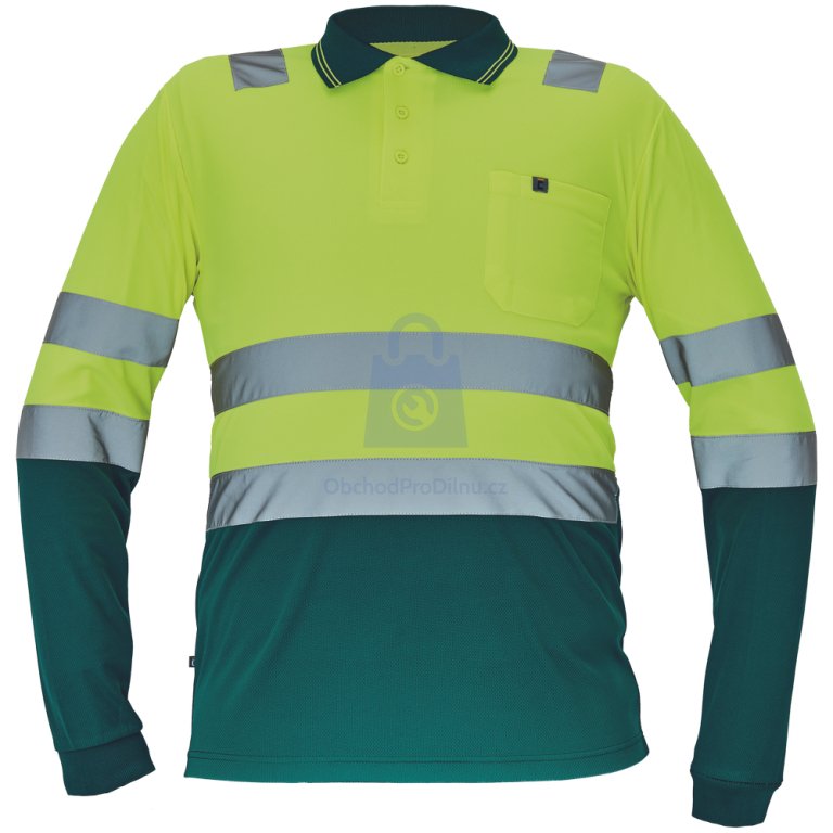 Má dlouhý rukáv zakončený elastickým lemem, zapínání na 3 knoflíky a náprsní kapsičku na drobnosti. Pro zvýšení viditelnosti je vybavena reflexními pruhy přes ramena a po bocích. Polokošile splňuje normu EN ISO 20471 (třída 1) a je vhodná pro skladování, logistiku nebo stavebnictví.