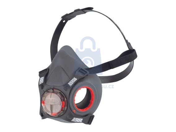 provedení, specifické vlastnosti polomaska se dvěma kazetami pro vyměnitelné filtry, ventil Typhoon s nízkým dýchacím odporem, čtyřbodový postroj s rychloupínacími přezkami, kompatibilní s úzkoprofilovými filtry