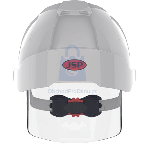 Pracovní ochranná přilba Evo Vista Shield, JSP slouží jako ochrana hlavy a zraku při práci. Přilba je vyrobena z odolného plastu ABS, zorník je polykarbonátový. Přilba je vybavena slotem pro chrániče sluchu. Velikost je nastavitelná od 53 do 64 cm, upravuje pomocí otočného kolečka.